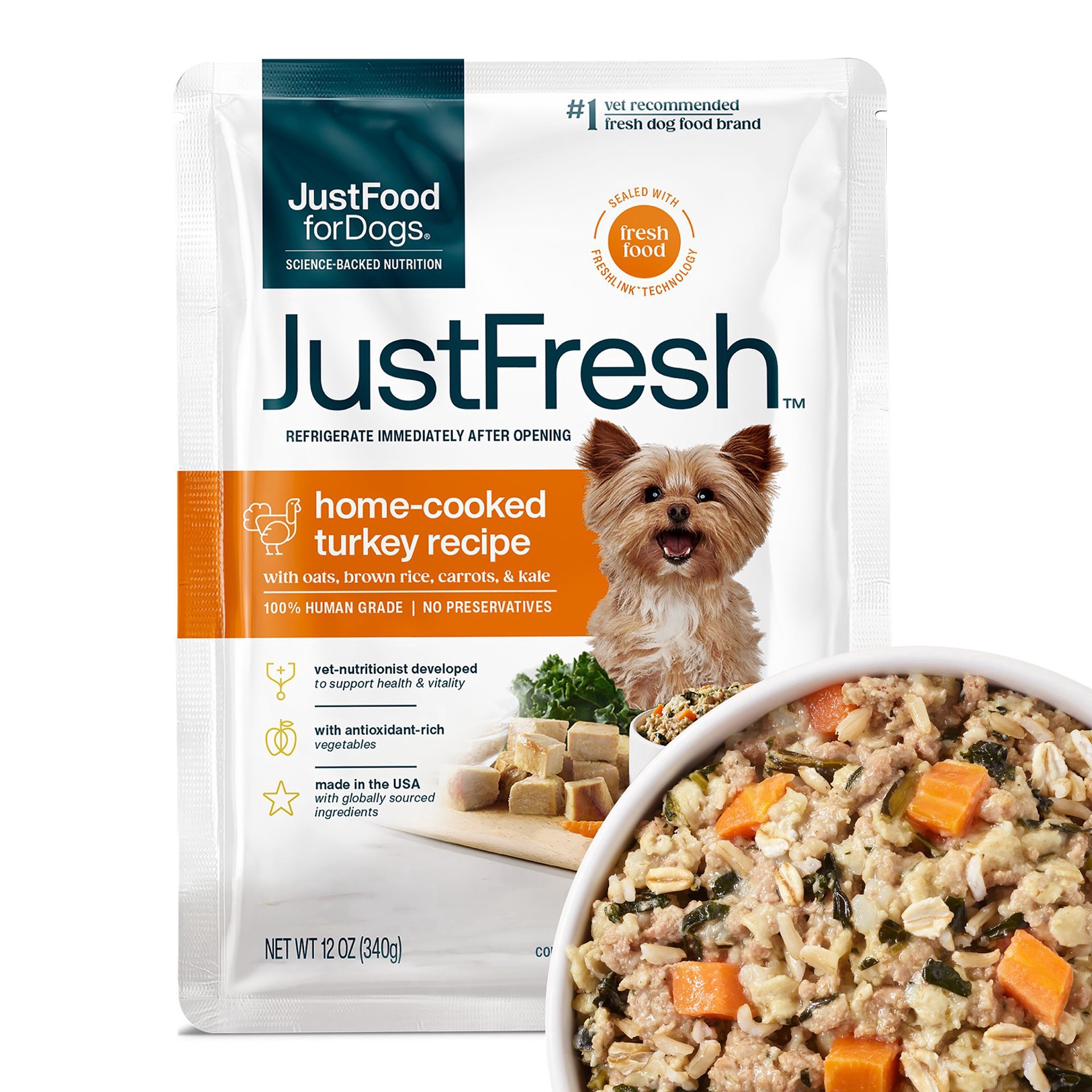 Turkey, Water, Turkey Liver, Oats, Brown Rice, Carrots, Kale, Potato Starch, Dicalcium Phosphate Flaxseed Oil, Marine Microalgae Oil, Calcium Carbonate, Potassium Chloride, Choline Bitartrate, Sat, Vi…