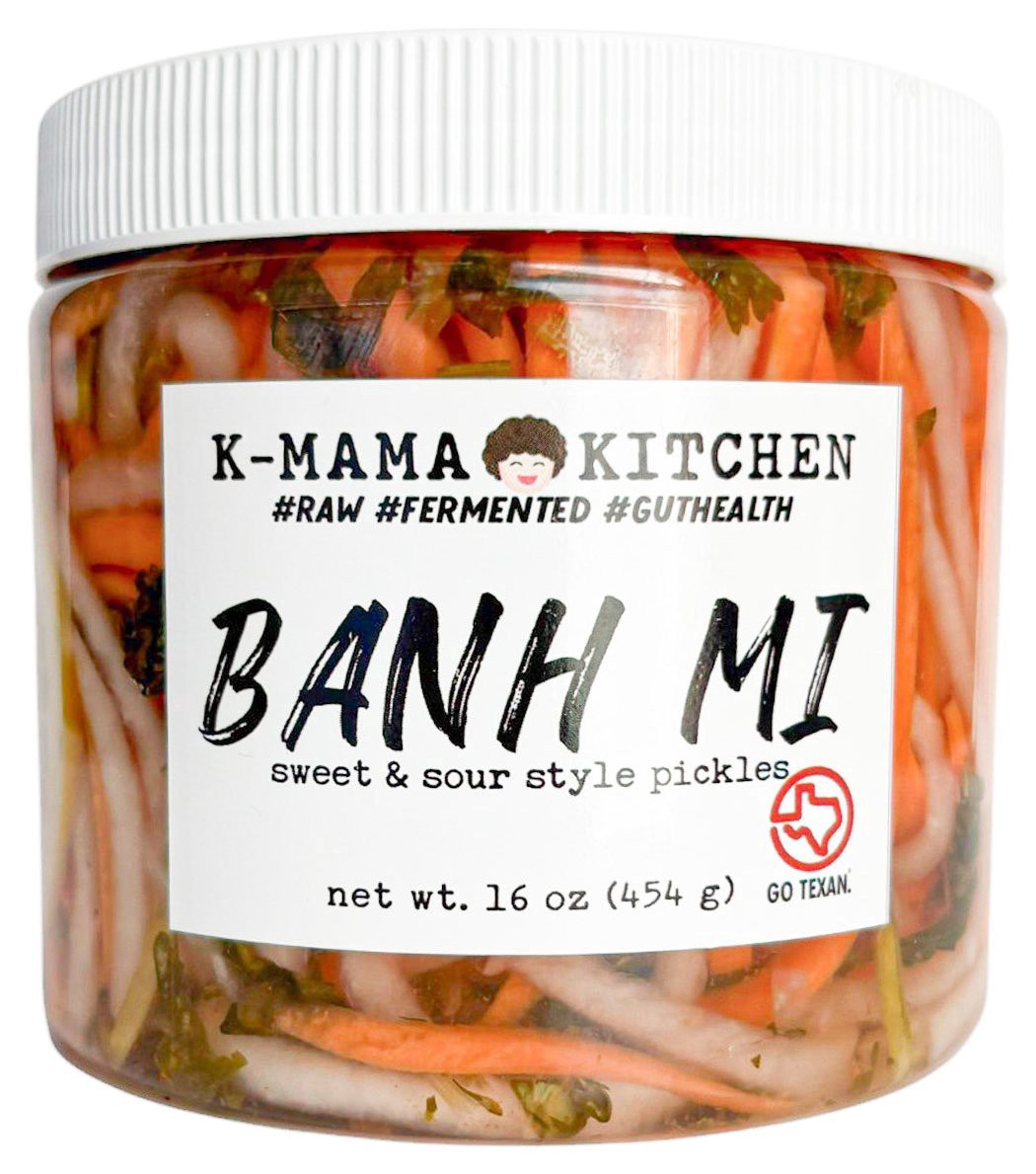 Recreate the iconic Banh Mi sandwich experience at home with K-Mama’s tangy and refreshing Banh Mi Mix Pickles. This vibrant blend of daikon radish, carrots, and fresh cilantro brings the perfect bala…