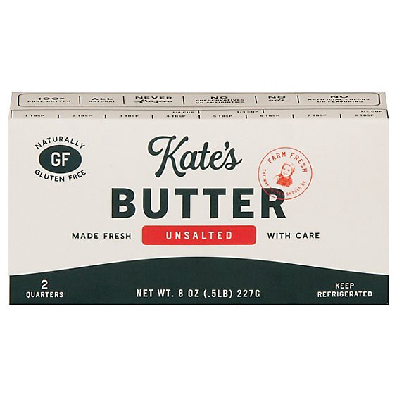 slide 1 of 1, Kates Unsalted Butter - 8 Oz, 8 oz