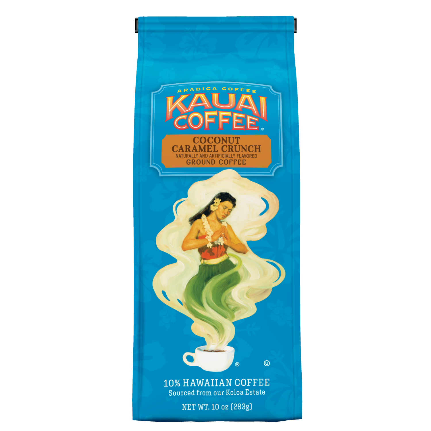 COCONUT CARAMEL CRUNCH – With natural and artificial flavoring, the taste of sweet, nutty caramel is blended with tropical coconut. One sip of our Kauai Coconut Caramel Crunch ground coffee and you''r…