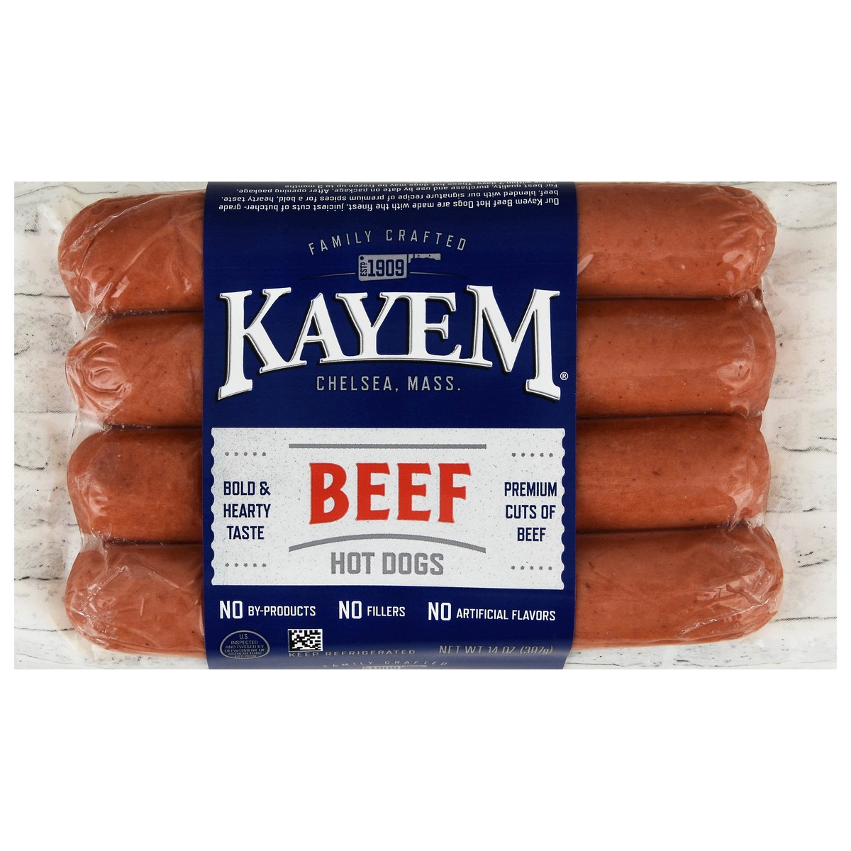 No artificial flavors. Gluten free. Family crafted. Estd 1909. Bold & hearty taste. Premium cuts of beef. No by-products. No fillers. Our Kayem Beef Hot Dogs are made with the finest, juiciest cuts of…