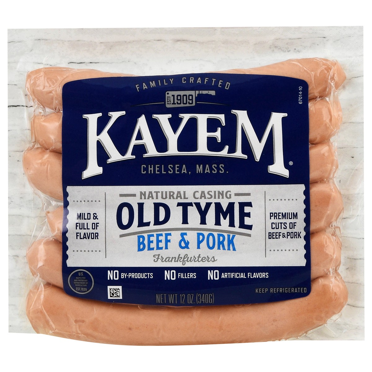 Family crafted. Estd. 1909. Mild & full of flavor. Premium cuts of beef & pork. No by-products. No fillers. Our Kayem Old Tyme Frankfurters are made with the finest, juiciest cuts of butcher-grade bee…
