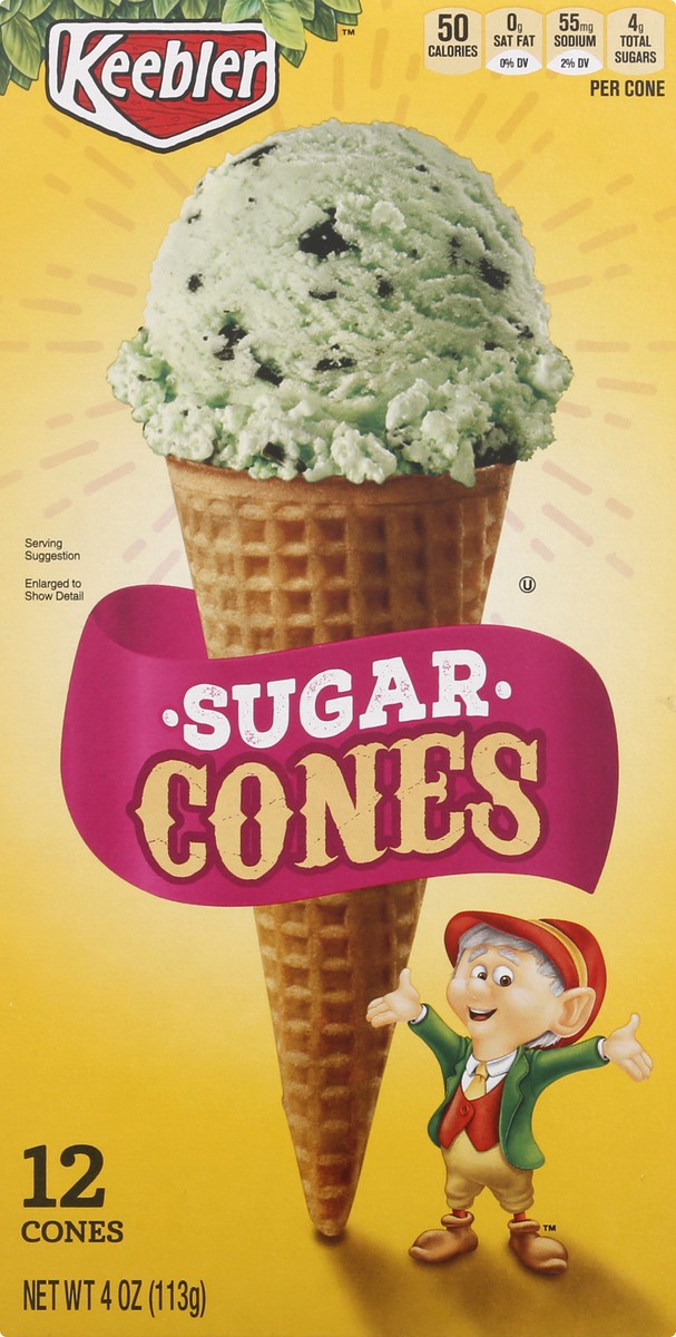 Per Cone: 50 calories; 0 g sat fat (0% DV); 55 mg sodium (2% DV); 4 g total sugars. how2recycle.info Questions or comments? Visit keebler.com; Call: 1-877-453-5837. Provide production code on package.…
