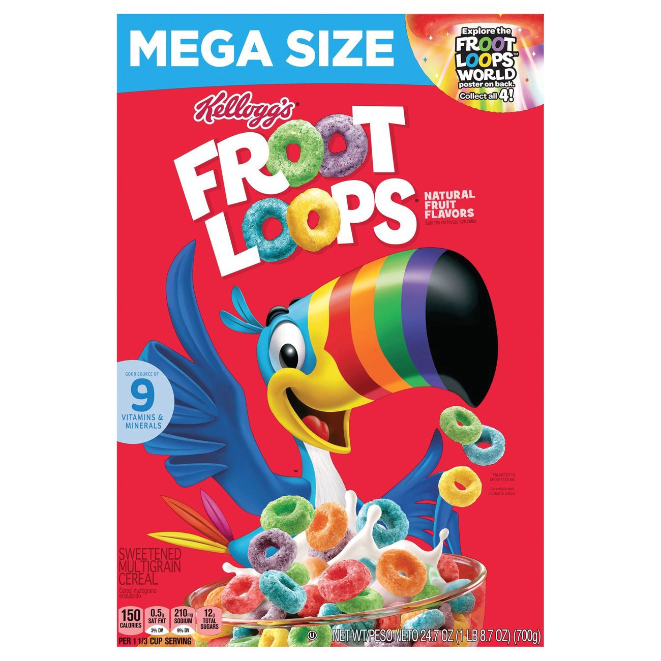 Follow your nose to delicious bursts of fruity flavor in Kellogg's Froot Loops sweetened multi-grain breakfast cereal. Includes 1, 23-ounce box containing vibrant, colorful crunchy O's made with tasty…