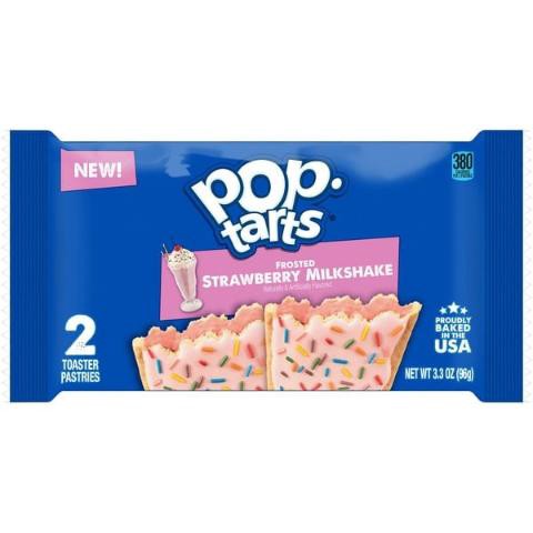 A smooth & creamy strawberry milkshake taste in a soft pastry crust with sweet filling on the inside topped with delicious strawberry-flavored frosting Convenient, ready-to-eat toaster pastries packag…