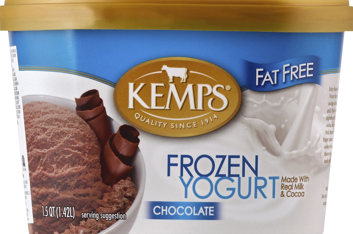 Artificially flavored. Quality since 1914. Made with real milk & cocoa. Gluten free. Real. Consumer Hotline: 1 (800) 726-6455. www.kemps.com. Enjoy Kemps Fat Free Frozen Yogurt, and indulge without th…