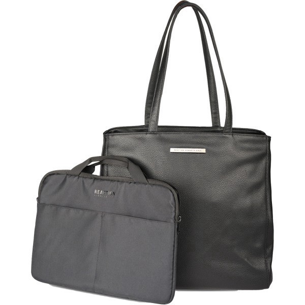 Carry your personal belongings in the Kenneth Cole Faux Leather Marley 16"" Laptop Tote With Removable Laptop Sleeve. The tote is made of pebble PU for durability, and it has a padded laptop compartme…