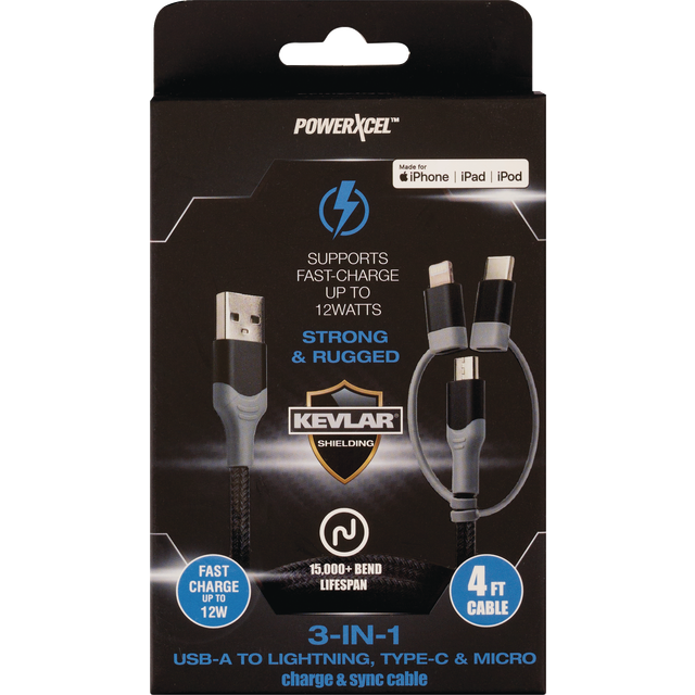 slide 1 of 1, Kevlar-3In1 Lightg,Micro&Type C-4Ft, 1 ct
