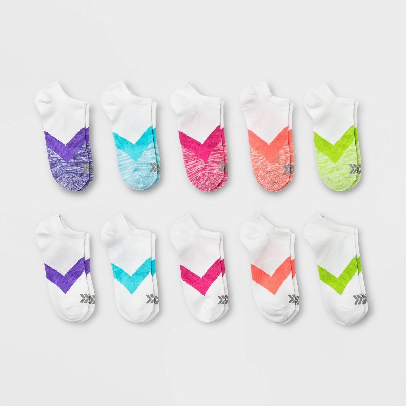 Why we're ALL IN:No-show socks made from moisture-wicking fabric help keep them fresh and cool to and from school or during a practice sesh. The 10-pack comes with white socks featuring space-dye and …
