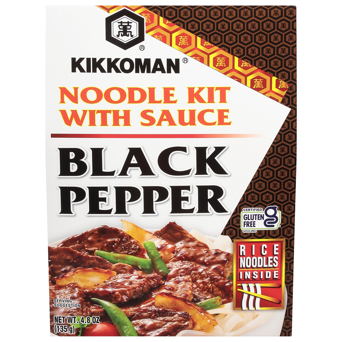 Noodles: Rice, Potato Starch, Sauce: Water, Soy Sauce (Water, Soybeans, Rice, Salt), Sugar, Tomato Paste, Sesame Oil, Modified Tapioca Starch, Black Pepper, Yeast Extract, Onion Powder, Garlic Powder.