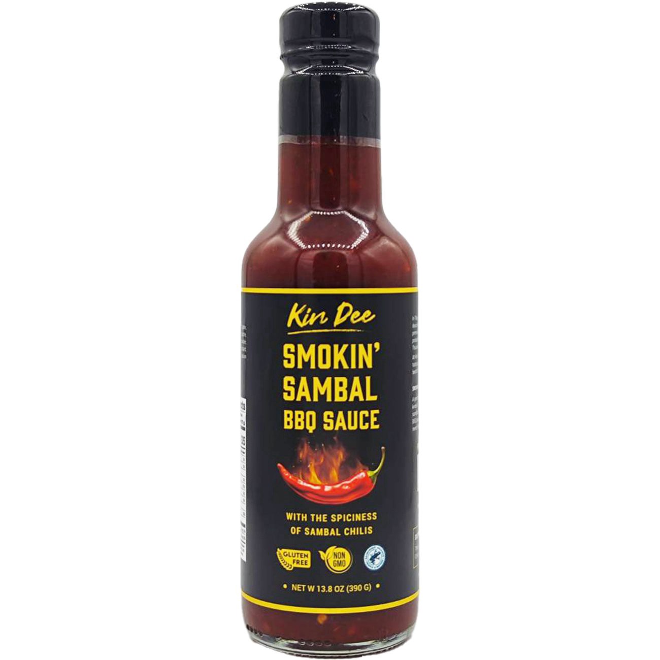 Try this sambal-based BBQ sauce from Kin Dee for all kinds of meats. It's full of the spiciness of sambal chilis plus the tangy smokiness of barbecue sauce. A flavorful combo where East meets West! Gl…