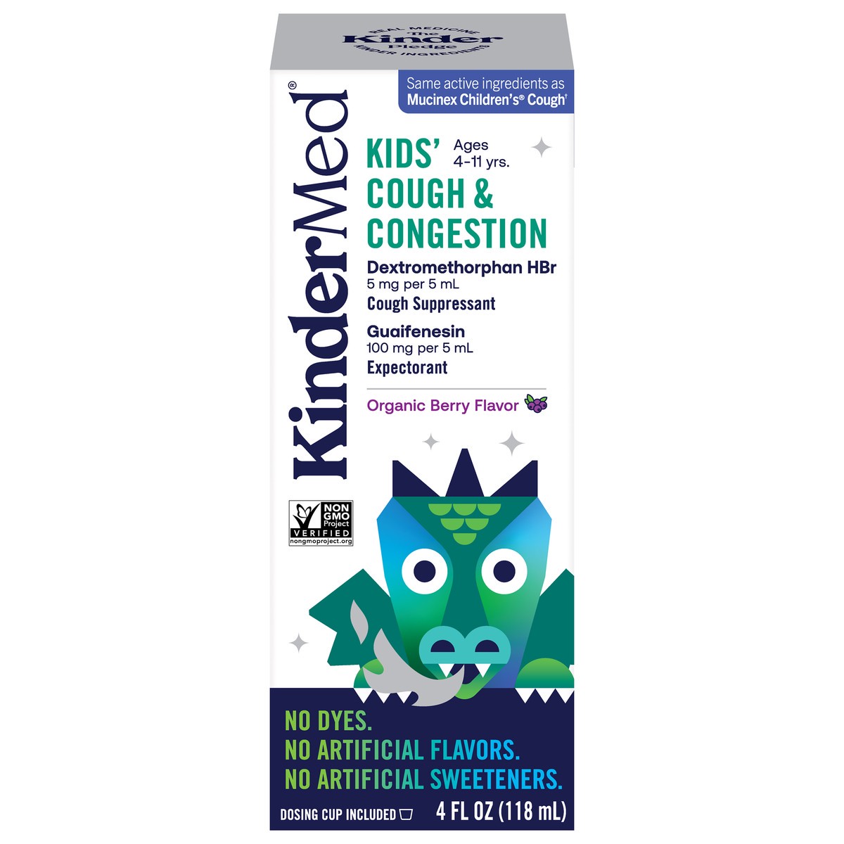 KinderMed Ages 4-11 Yrs Organic Berry Flavor Kids' Cough & Congestion 4 fl oz
