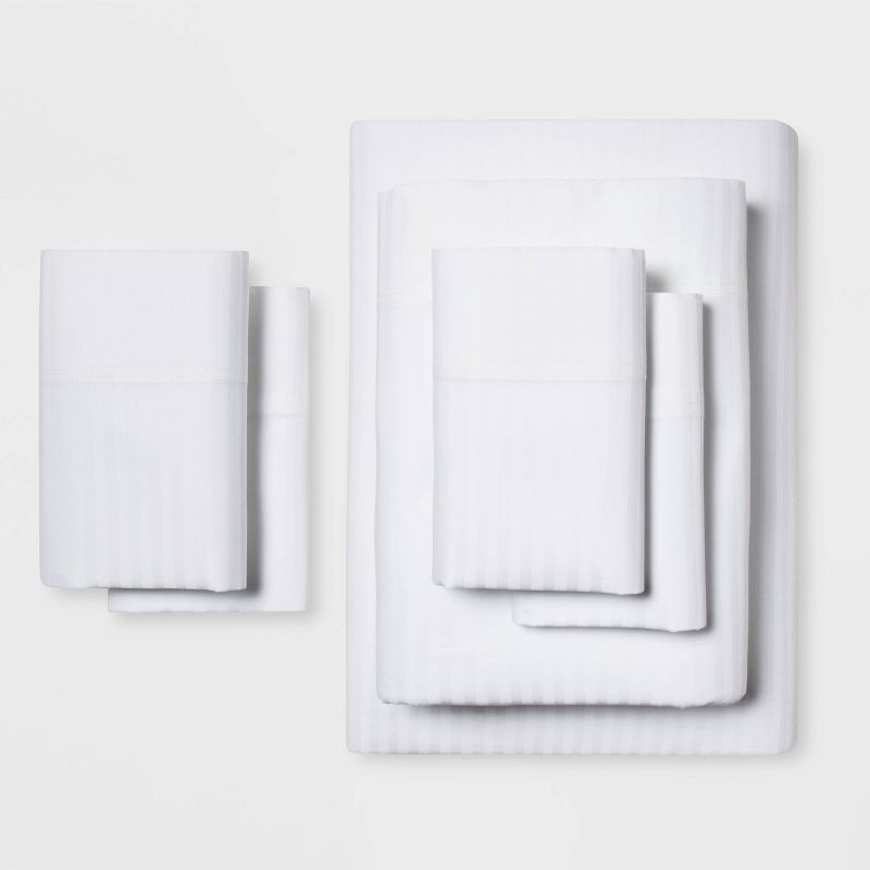 King 6pc 400 Thread Count Damask Solid Sheet Set White - Threshold™: Cotton Sateen, OEKO-TEX Certified, Fits 18" Mattress