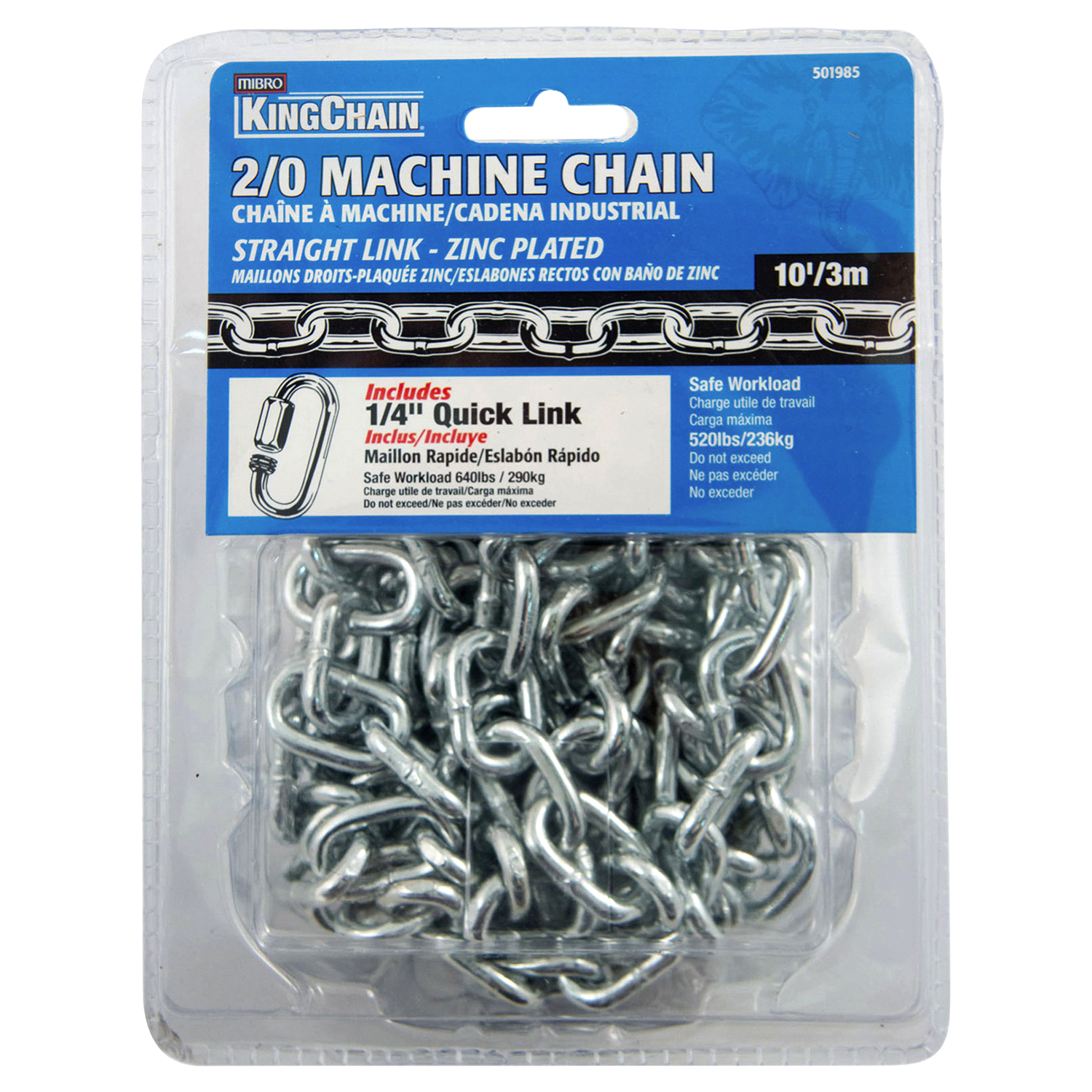 KingChain 3/16 x 10' Straight Link Machine Chain, Zinc-Plated - Grab 'N Go Pack
