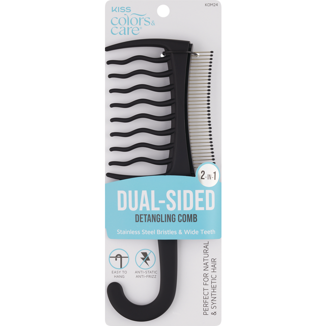 Kiss Colors & Care 2-In-1 Dual-Sided Detangling Wig Comb, Black