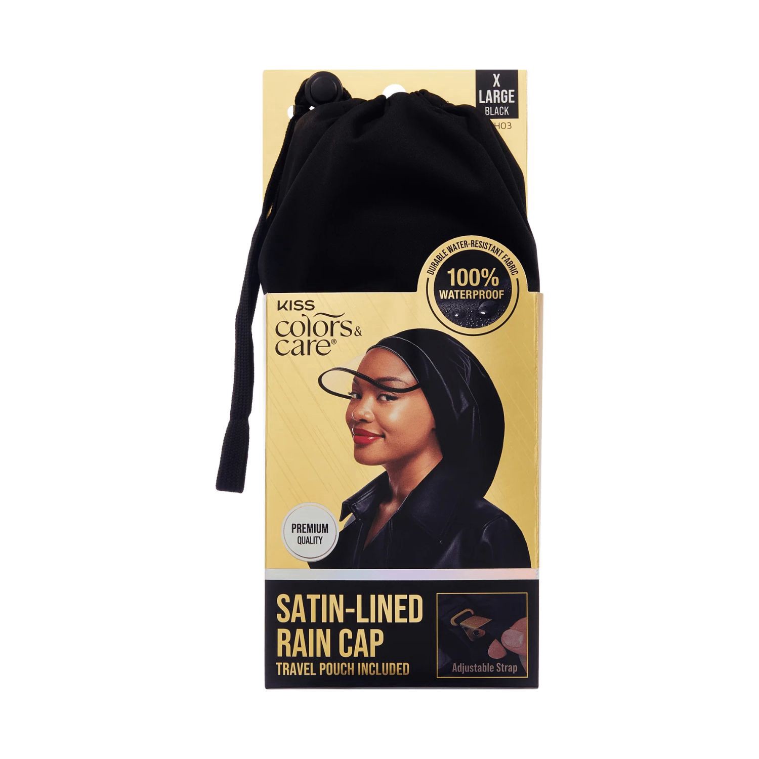 Kiss Colors & Care Satin-Lined Premium Rain Cap, Extra Large, Black