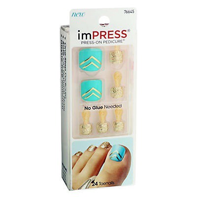 You won't believe your toes! Get an on-trend turquoise, chevron accent & gold glitter pedi in minutes with NEW imPRESS Press-on Pedicure. SuperHold technology with dual layer adhesive helps nails st…