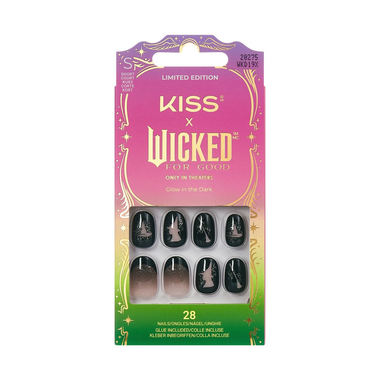 ‘Own Your Power' with these black press on nails inspired by Elphaba from the movie ‘Wicked: For Good'. Designed with Elphaba's signature witch's hat and flying broomstick, you can wear them in the th…