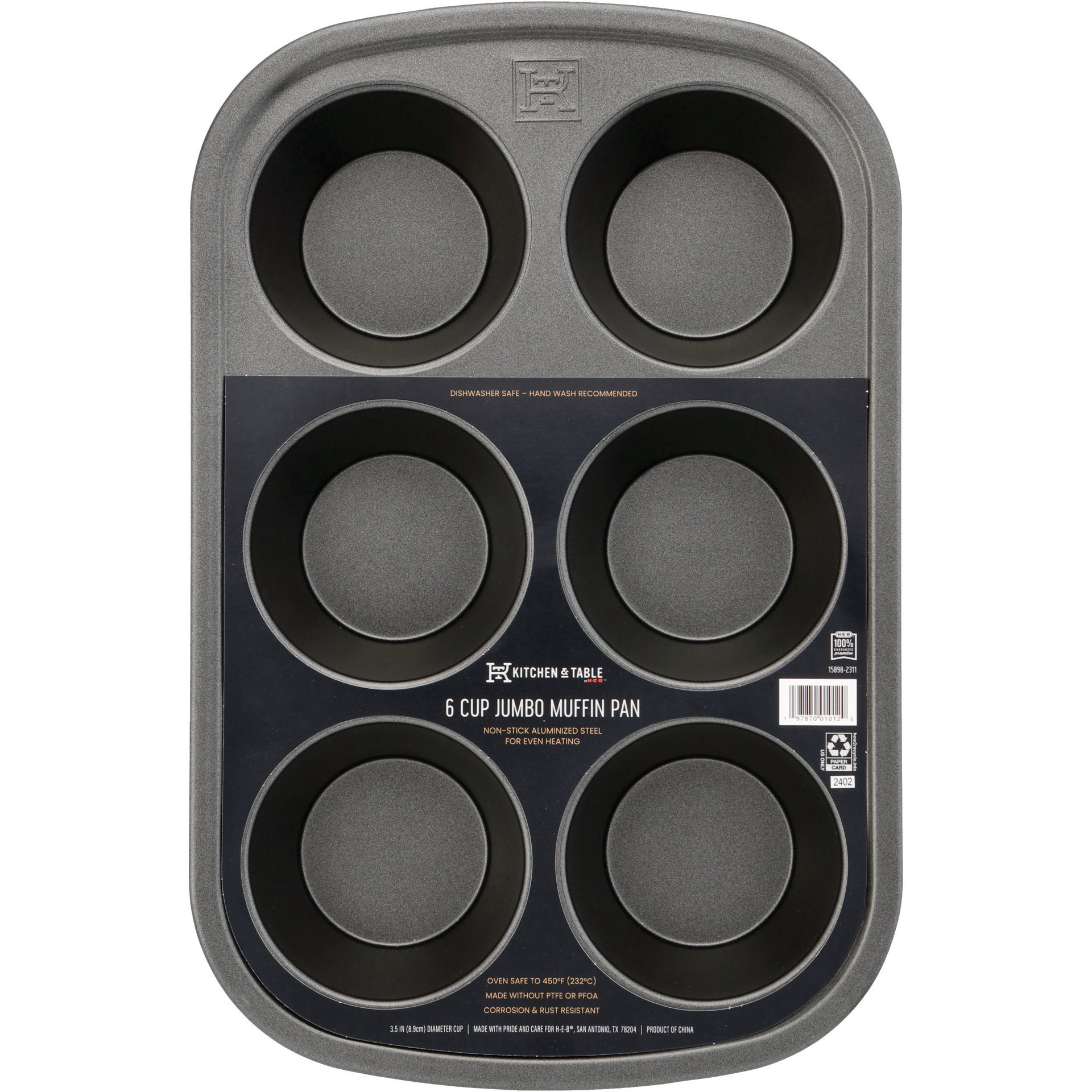 Level up your baking with this Kitchen & Table by H-E-B muffin pan. Crafted with durable .6mm aluminized steel, this pan ensures even heat distribution for perfectly baked treats every time. Perfect f…