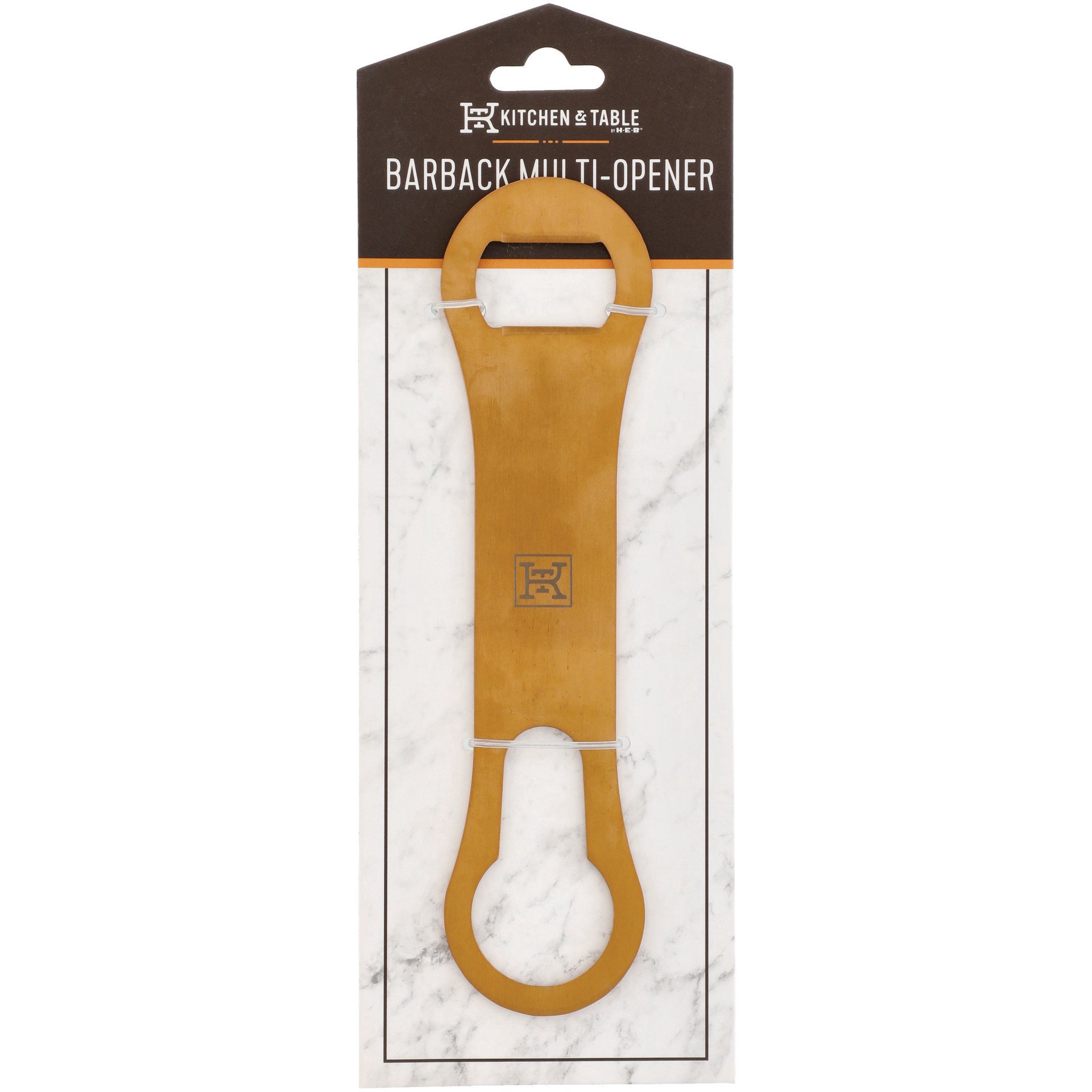 Pop caps off beers or pour spouts out of bottles with an easy twist of the wrist with our Kitchen & Table by H-E-B™ Barback Multi-Opener.• Long handle provides additional leverage for easy cap removal…
