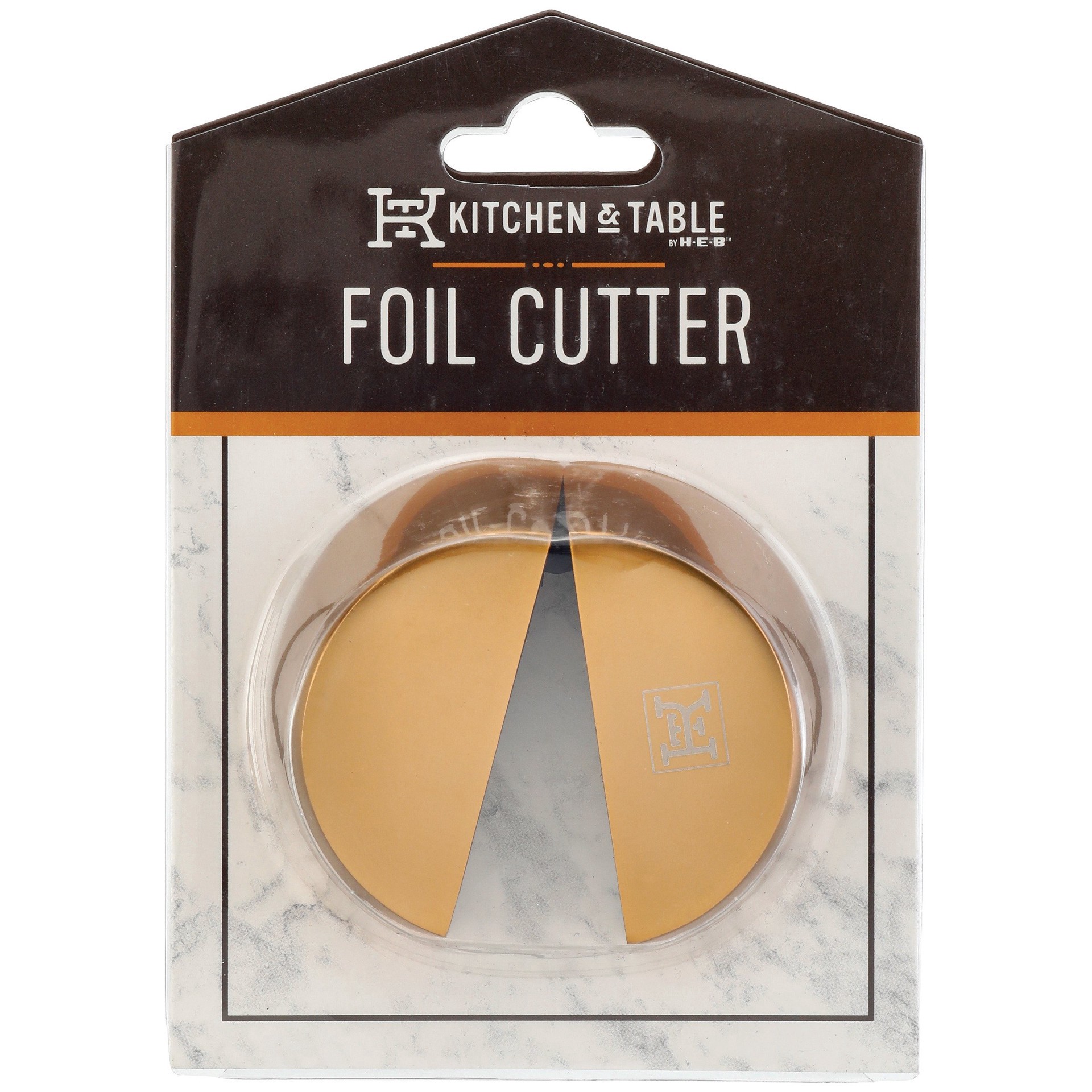 Our Kitchen & Table by H-E-B™ Foil Cutter wraps around the top of wine bottles and uses six sharpened disc blades to remove the foil.• Antique gold finish • Classic, durable design About the Brand: Ex…