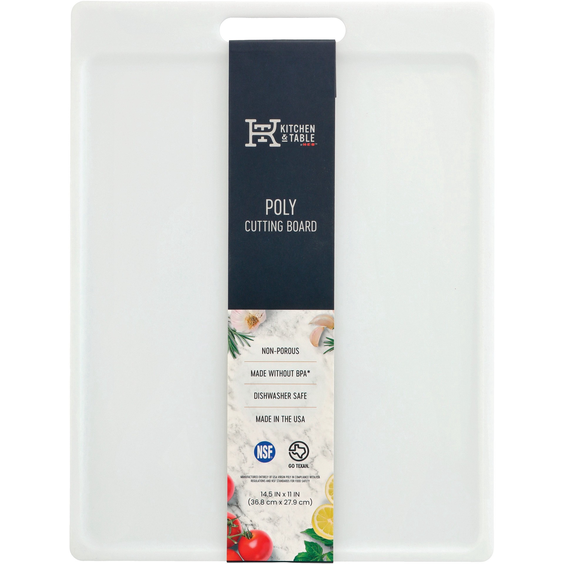 Kitchen & Table by H-E-B Poly Cutting Board• 14.5 inch x 11 inch• Non-porous• Dishwasher safe