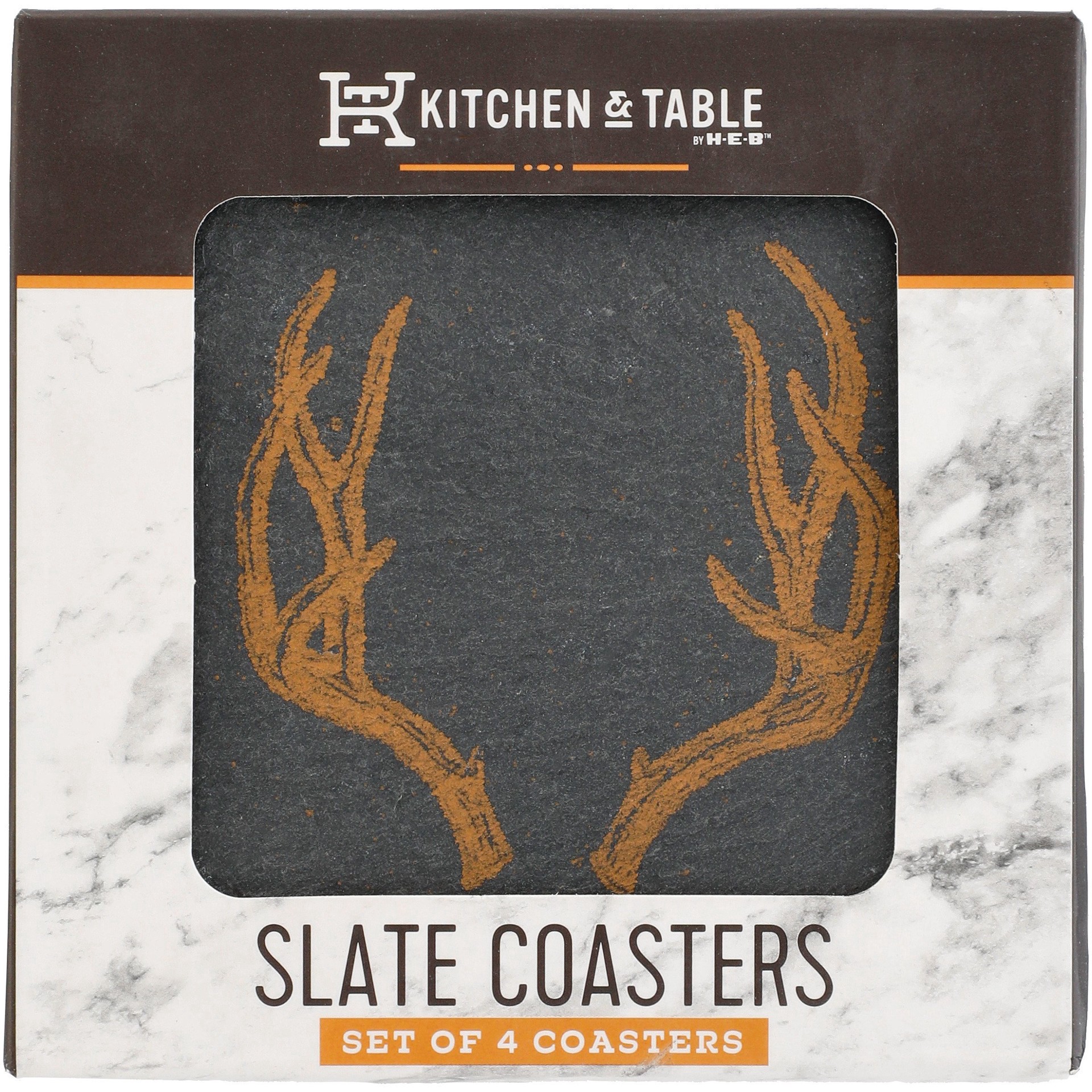 Add style to your table with our Kitchen & Table by H-E-B™ Slate Antler Coasters.• Made of slate with antique gold design• Set of 4 Coasters About the Brand: Extraordinary meals don't start with the o…