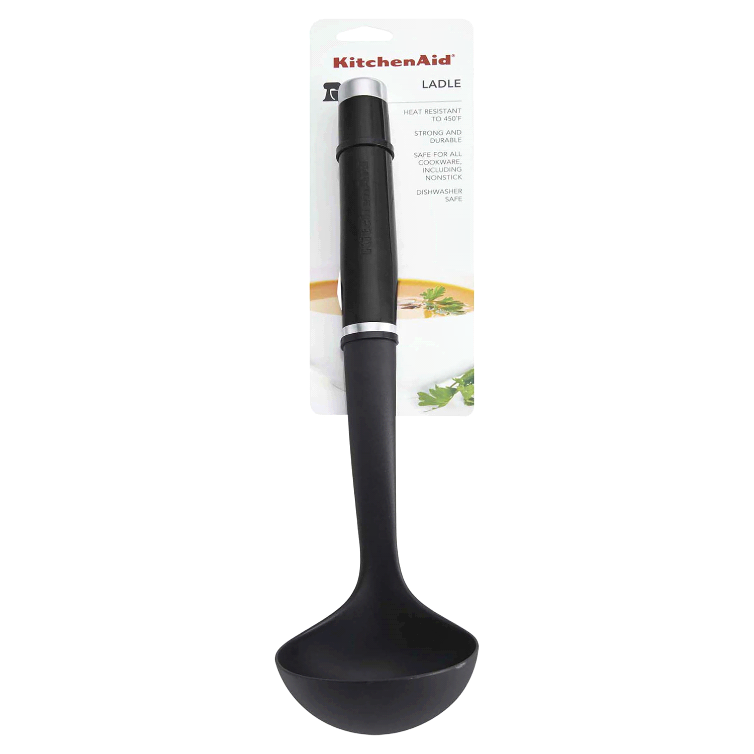 This Black KitchenAid Nylon Ladle is perfect for gravies, soups, liquid dishes, dressings, and sauces. The long plastic handle and large bowl make it ideal for scooping into large pots to serve chili …