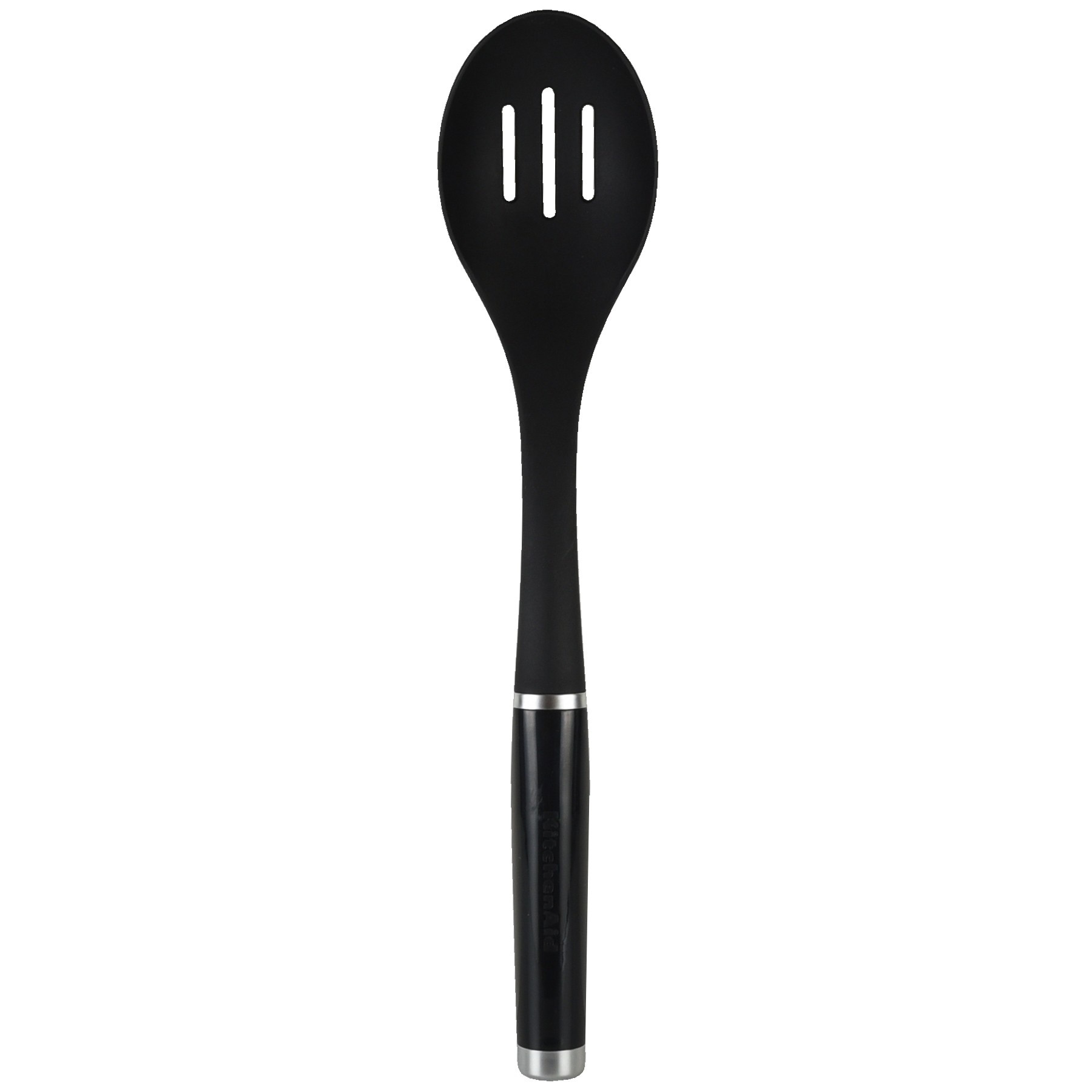 This KitchenAid Black Nylon Slotted Spoon is an essential cooking tool for all kitchens. The slotted bowl lets you scoop out food and drain liquid away, leaving the juices in the pot. It features a pl…