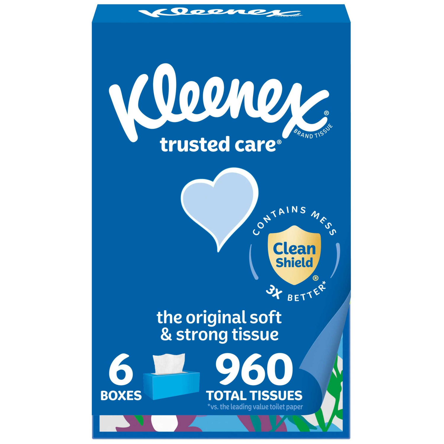Kleenex Trusted Care Facial Tissues, 6 Flat Boxes, 160 Tissues per Box, 2-Ply (960 Total Tissues)