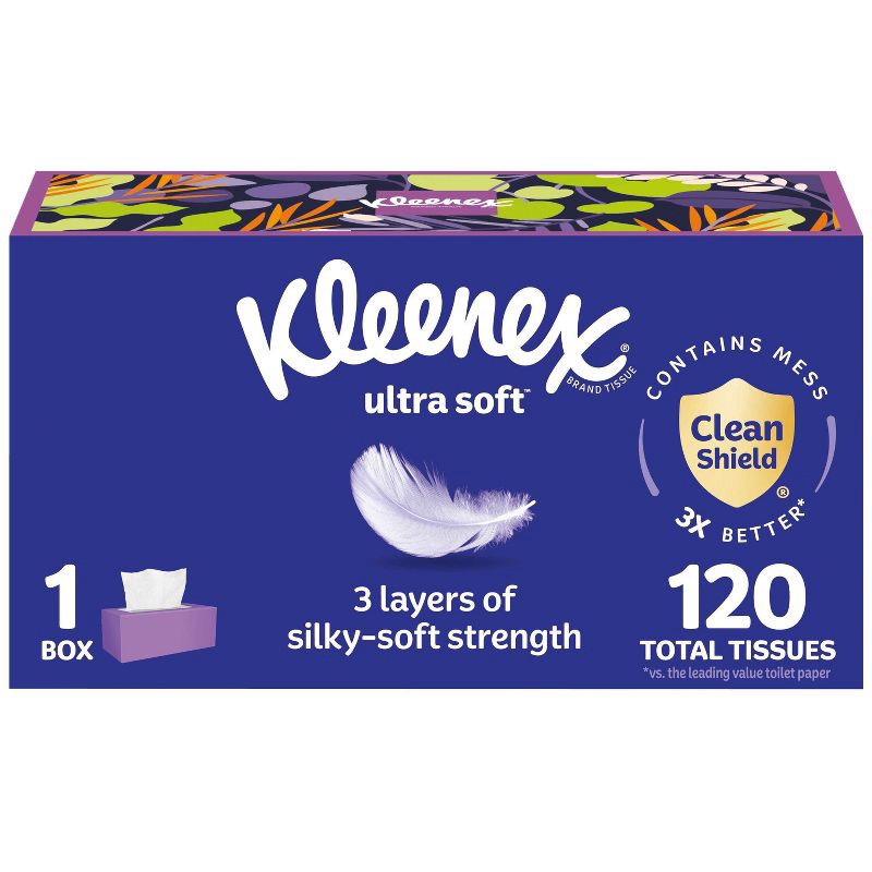 - WHAT'S INCLUDED — 1 flat box of Kleenex Ultra Soft Facial Tissues, 3-Ply, 120 tissues per box (120 tissues total)