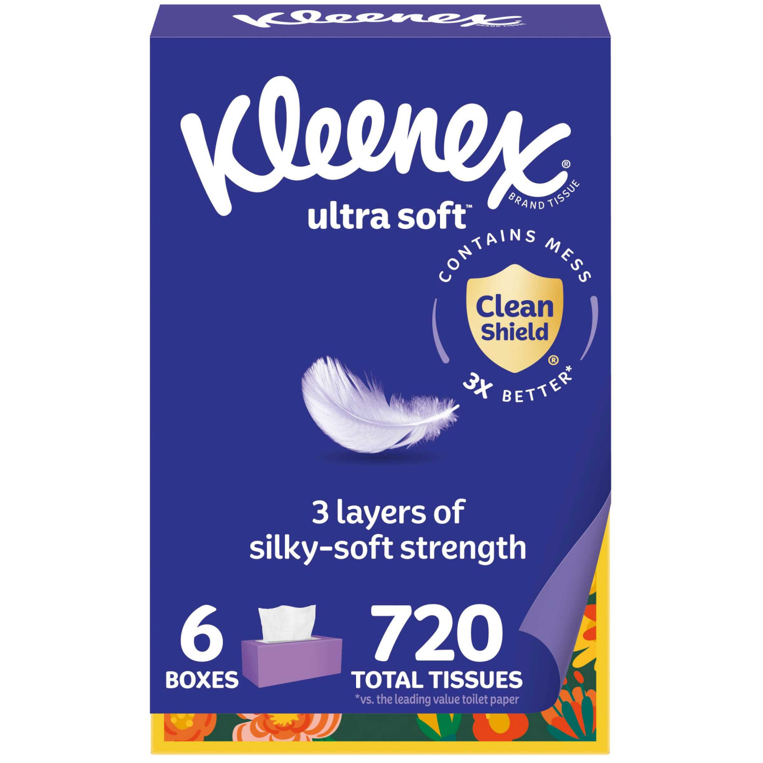 Kleenex Ultra Soft Facial Tissues, 6 Flat Boxes, 120 Tissues per Box, 3-Ply (720 Total Tissues)