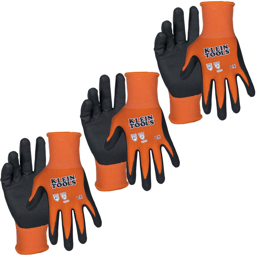slide 3 of 6, Klein Tools Knit Dipped Gloves, Cut Level A1, Touchscreen, Large, 3-Pair, 1 ct