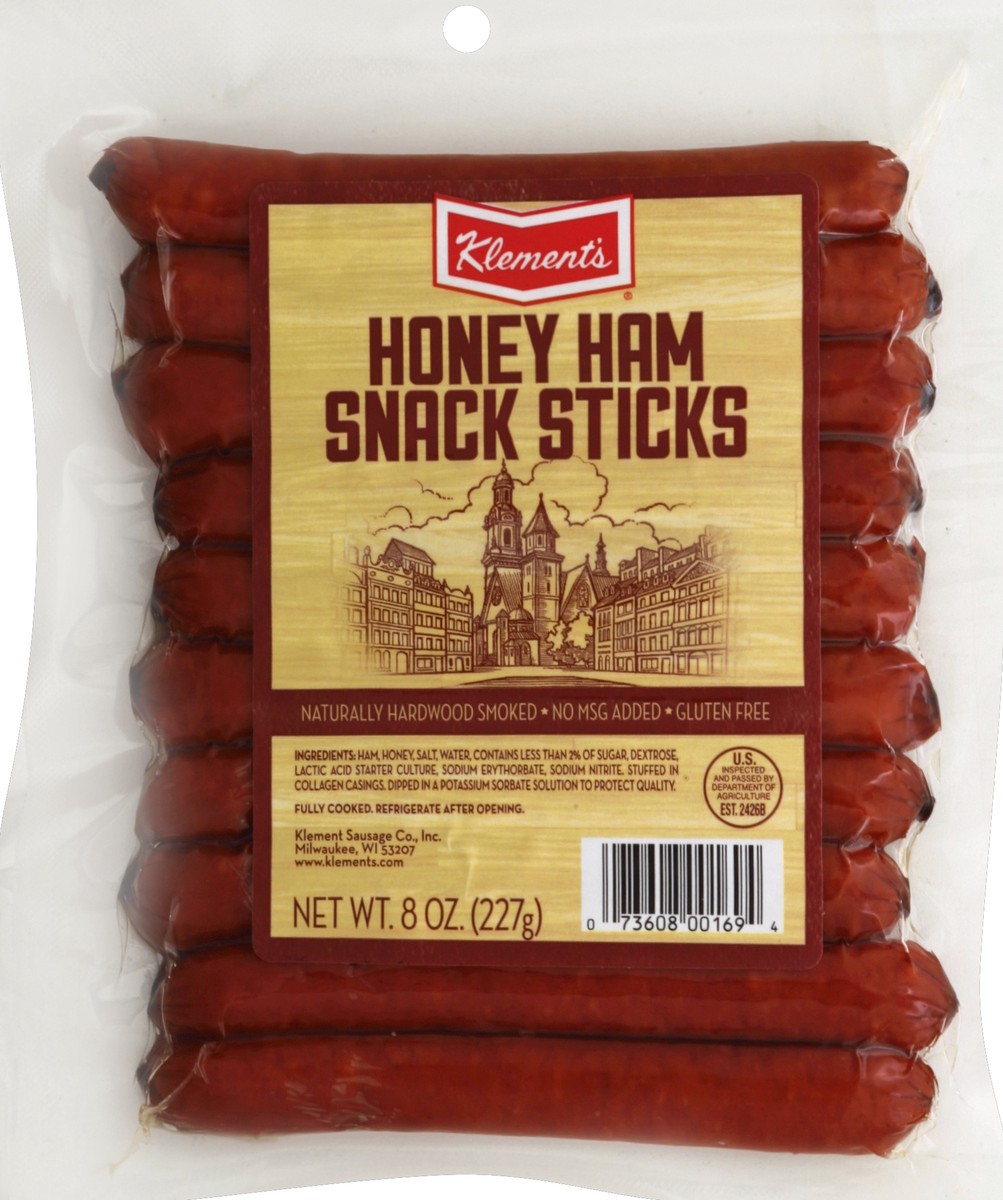 Ham, Honey, Salt, Water, Contains Less than 2% of Sugar, Dextrose, Lactic Acid Starter Culture, Sodium Erythorbate, Sodium Nitrite. Stuffed in Collagen Casings. Dipped in a Potassium Sorbate Solution …