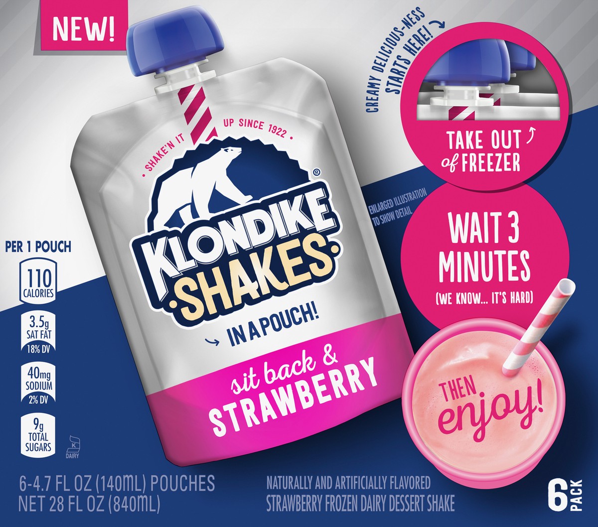New! Shake'n it up since 1922. Klondike Shakes in a pouch! Fact: Sometimes we just need to sit back\, chill out\, stress less & indulge in something creamy & amazing. Yep. We got you. Sit back & straw…