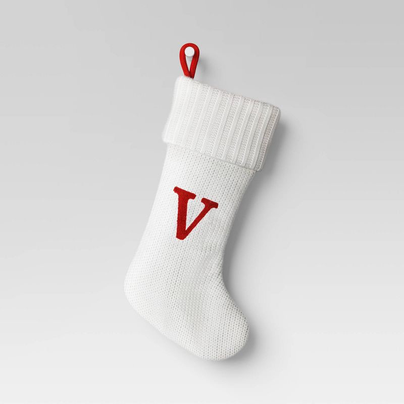 Knit Monogram Christmas Stocking White V - Wondershop™
