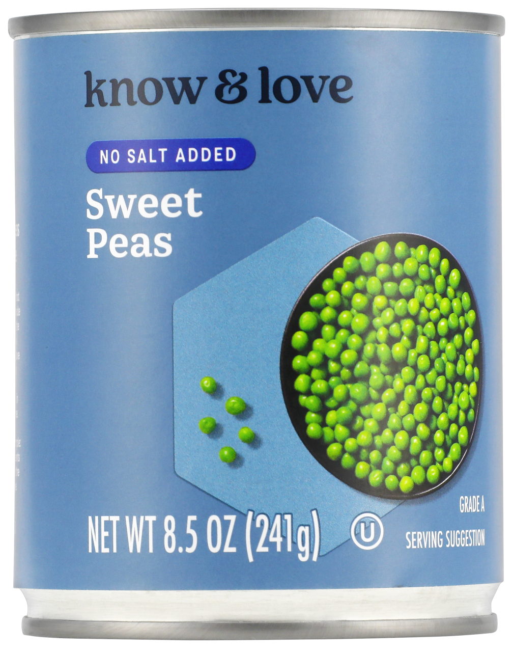 slide 1 of 1, Know & Love No Salt Added Sweet Peas - 8.5 oz, 8.5 oz