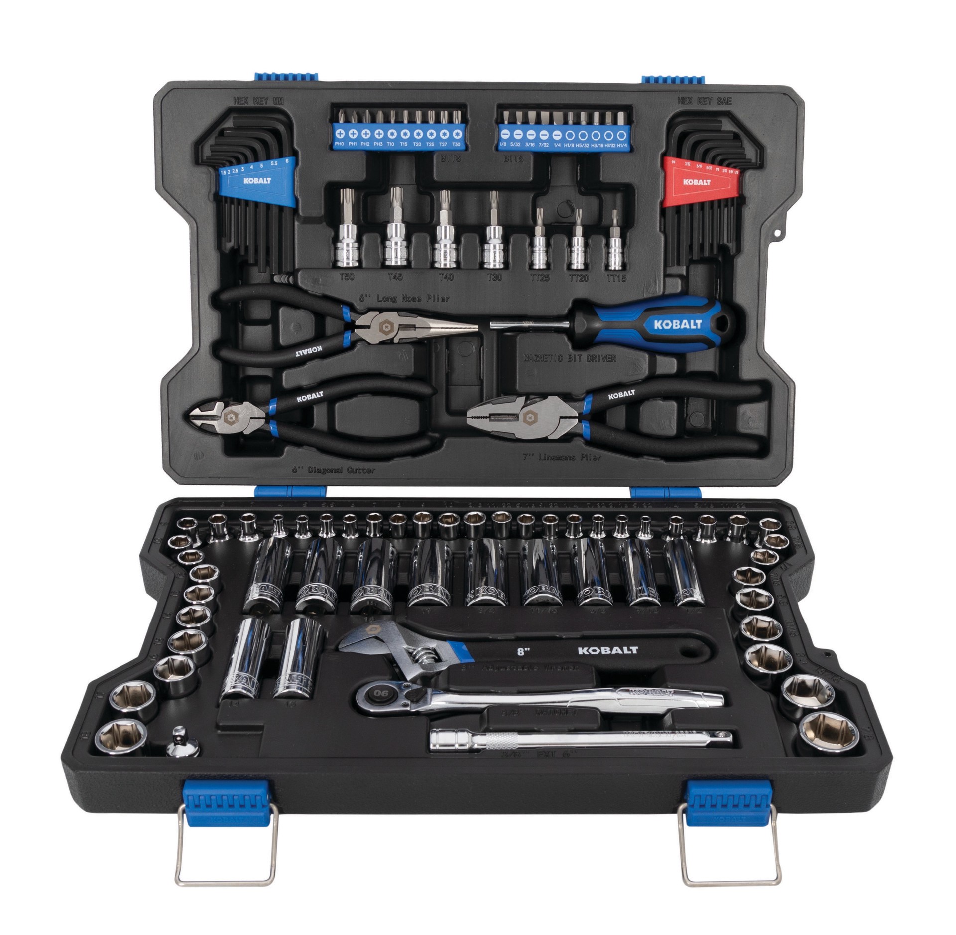 Kobalt's 102-piece mechanic's hand tool set contains 1/4-inch and 3/8-inch sockets, a 3/8-inch drive ratchet and other popular tools to help complete most any project. Constructed of chrome vanadium s…