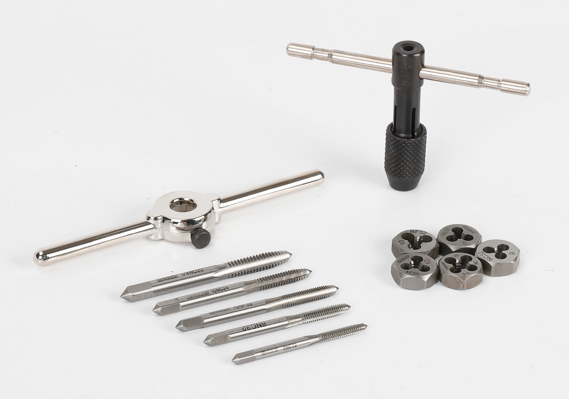 Tap and die set includes the most common machine screw and fractional plug taps and 5/8 in hex dies plus necessary drive tools. Set includes 3 mm, 4 mm, 5 mm, 6 mm, 7 mm metric. Thread pitches size in…