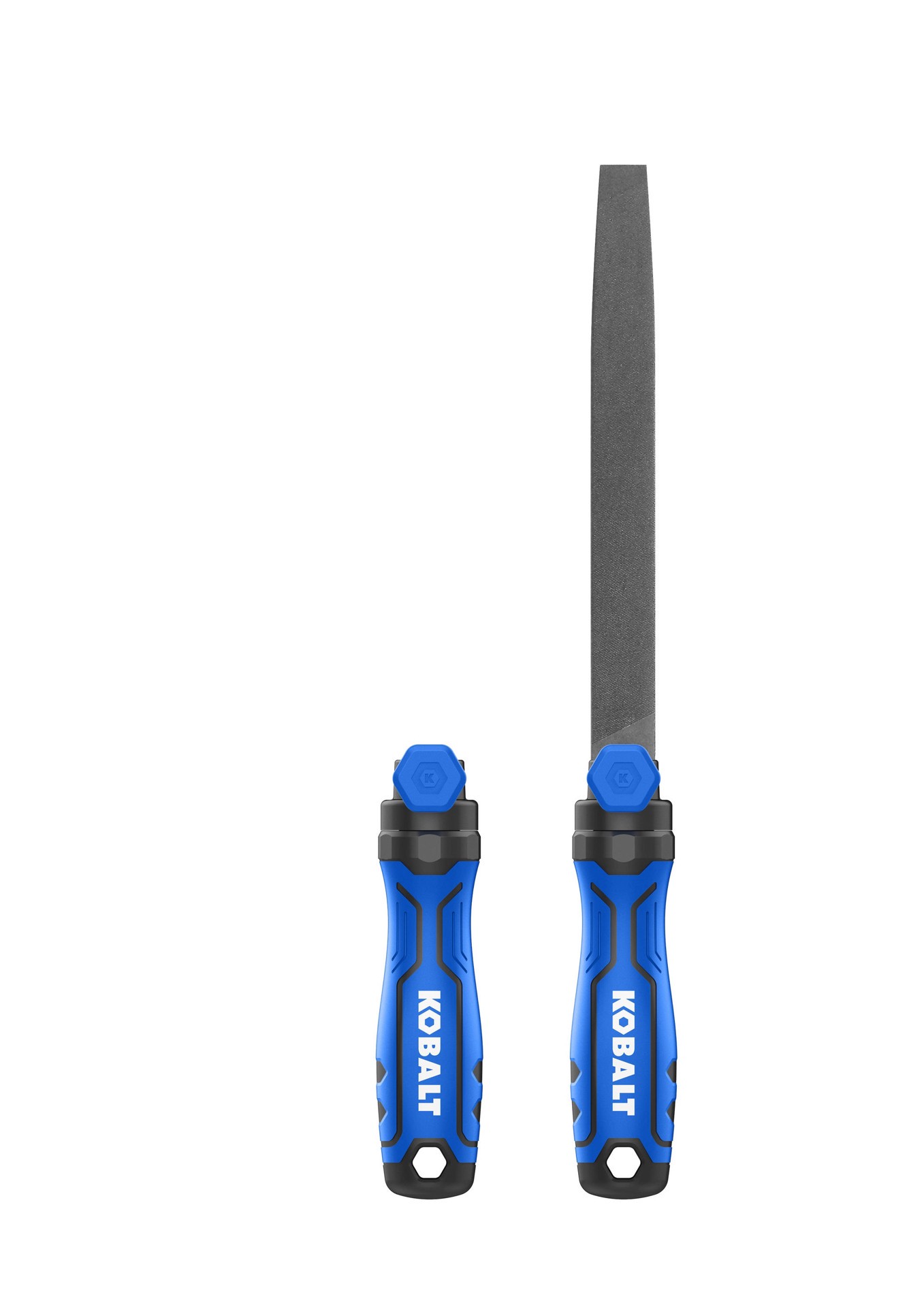 Large, quick adjusting knob offers fast tool changes. Allows the user to work with a full line of Kobalt hand files (files are not included with handle). The handle is constructed from a bi-material f…
