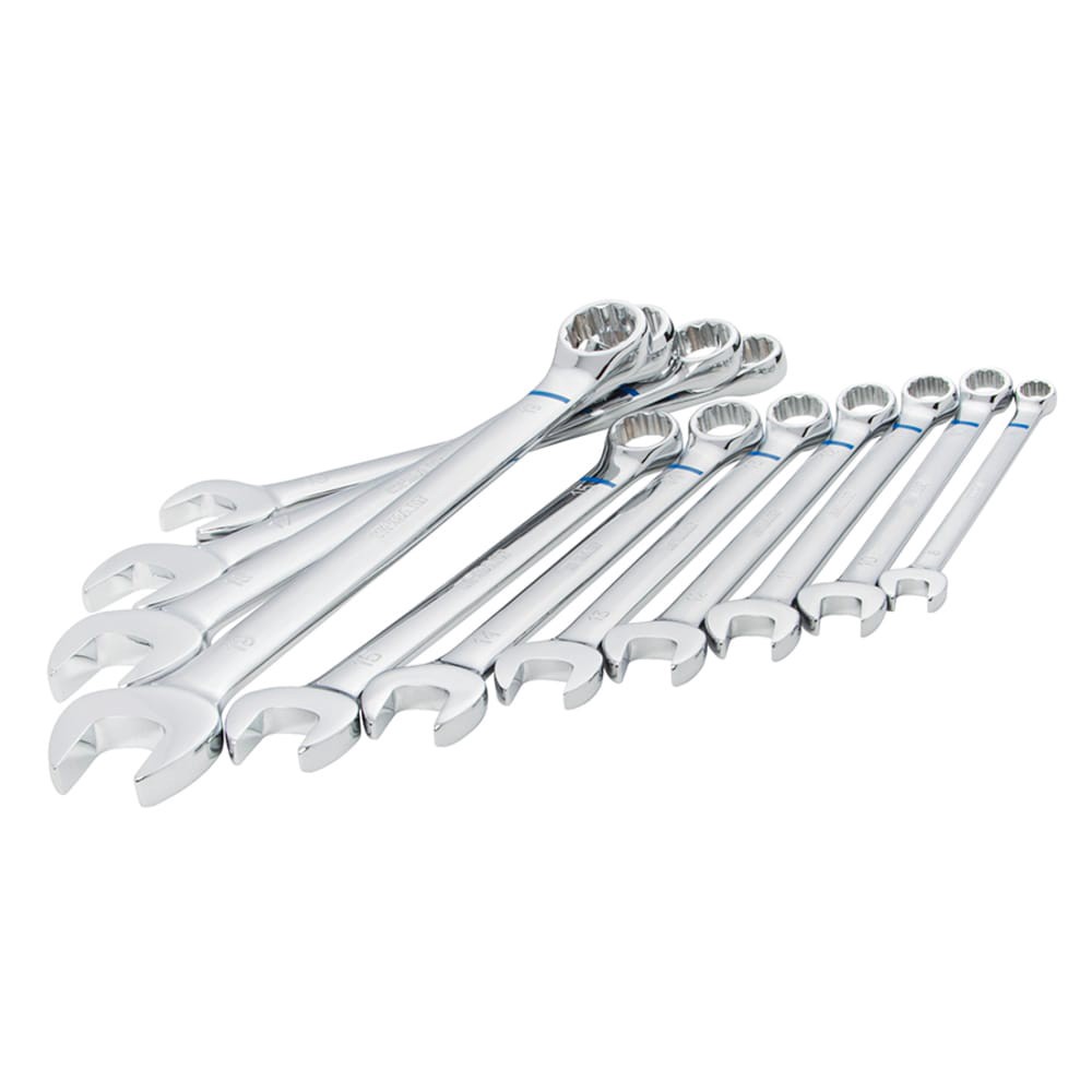 Kobalt's 11-piece metric combination wrench set includes 8, 10, 11, 12, 13, 14, 15, 16, 17, 18 and 19mm wrenches. Open end features V-notch design and provides solid contact with your fastener during …