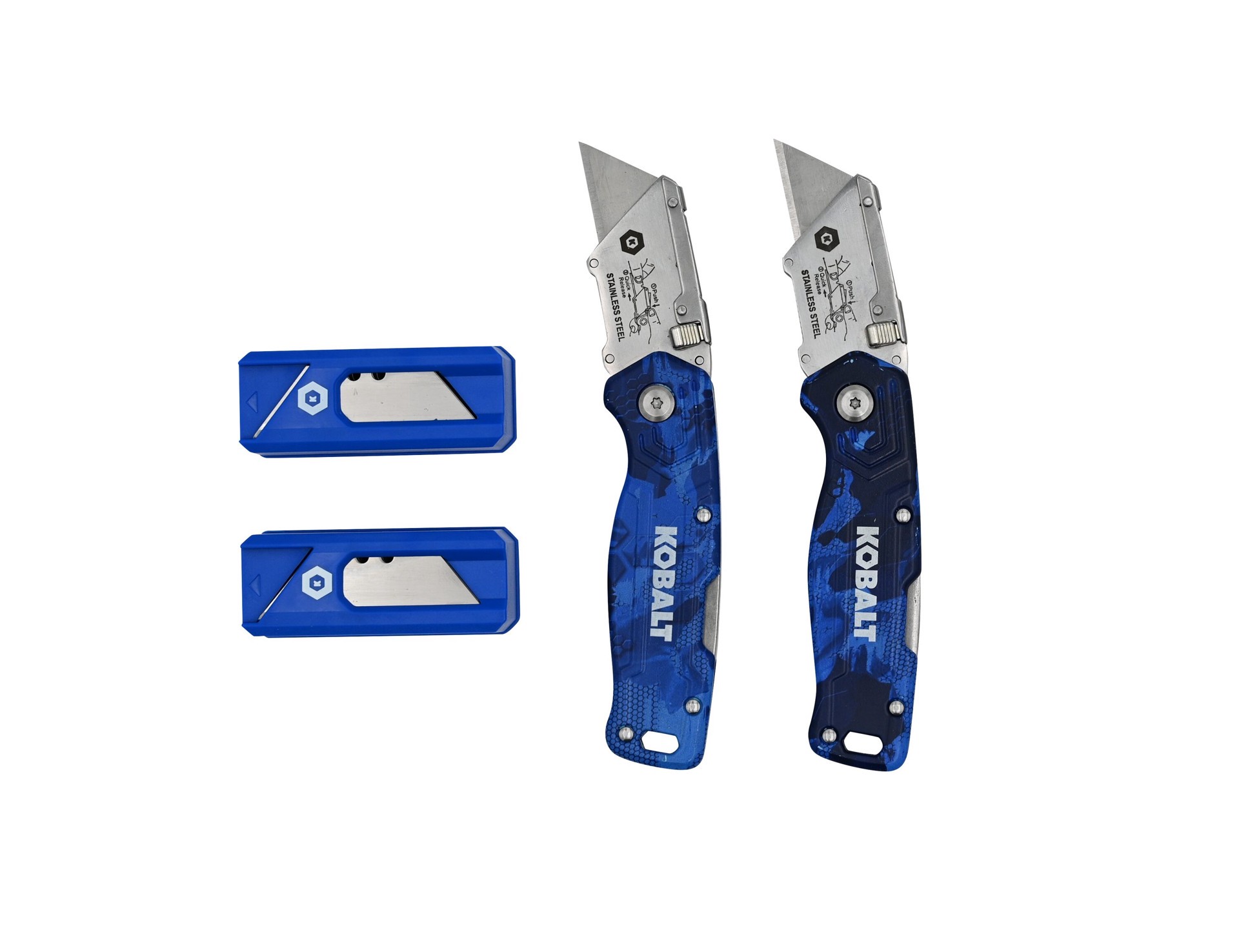 Quick change mechanism for easy blade replacement. Camo ergonomic aluminum handle. Folding design for convenience and safety. Accepts standard size utility blade. Includes 2 knives and 50 blades: 2 in…
