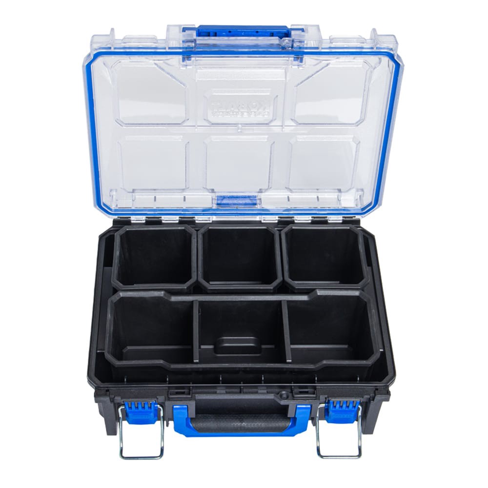 Compatible with all KOBALT CASESTACK modular storage products. Heavy-duty, impact-resistant polymers provide 15 lb weight capacity. 6 Individual compartments to store hardware and accessories. IP65 du…