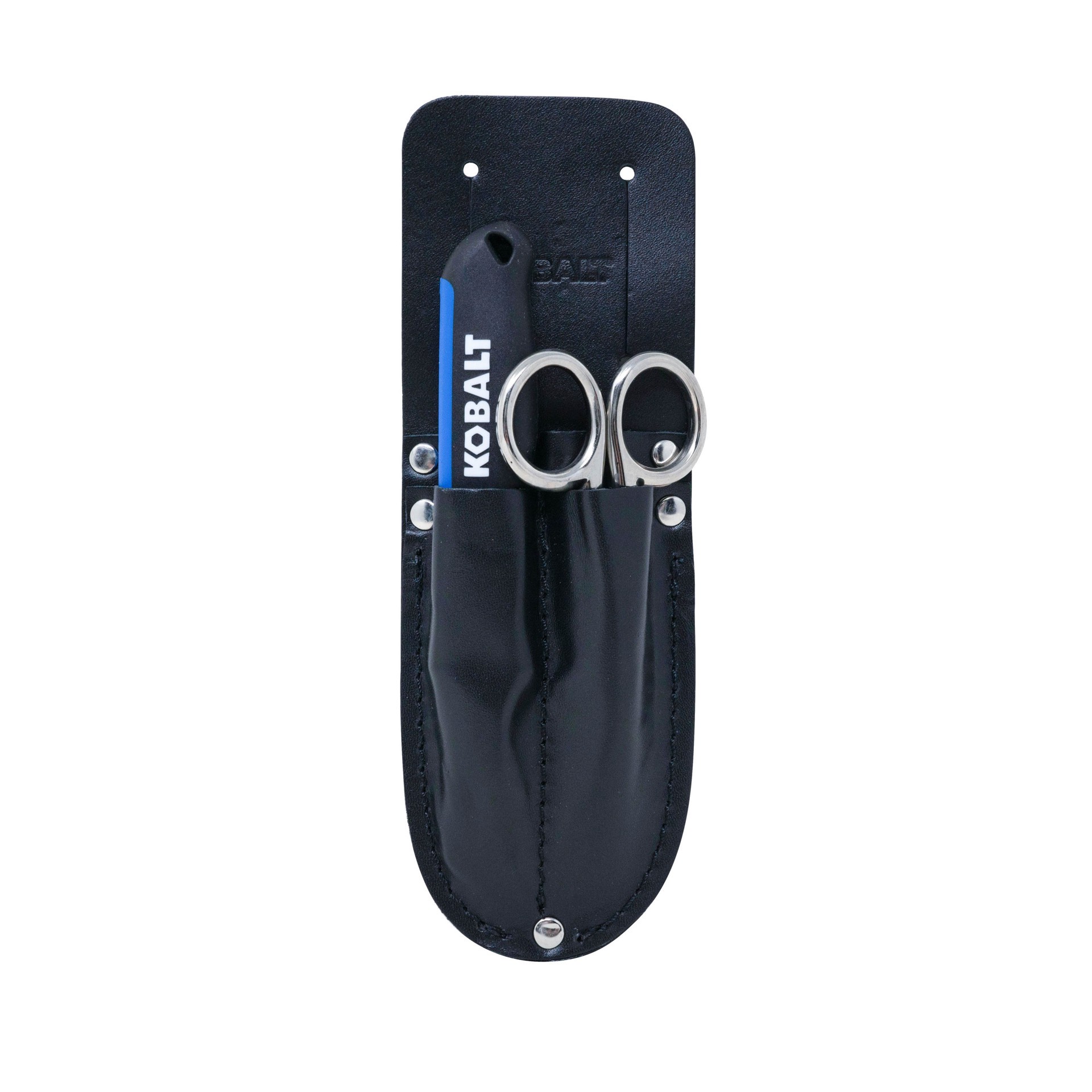Genuine leather pouch with durable riveted construction. Boot knife with molded comfort handle for stripping and cutting. Scissors and boot knife made from corrosion-resistant stainless steel. Scissor…