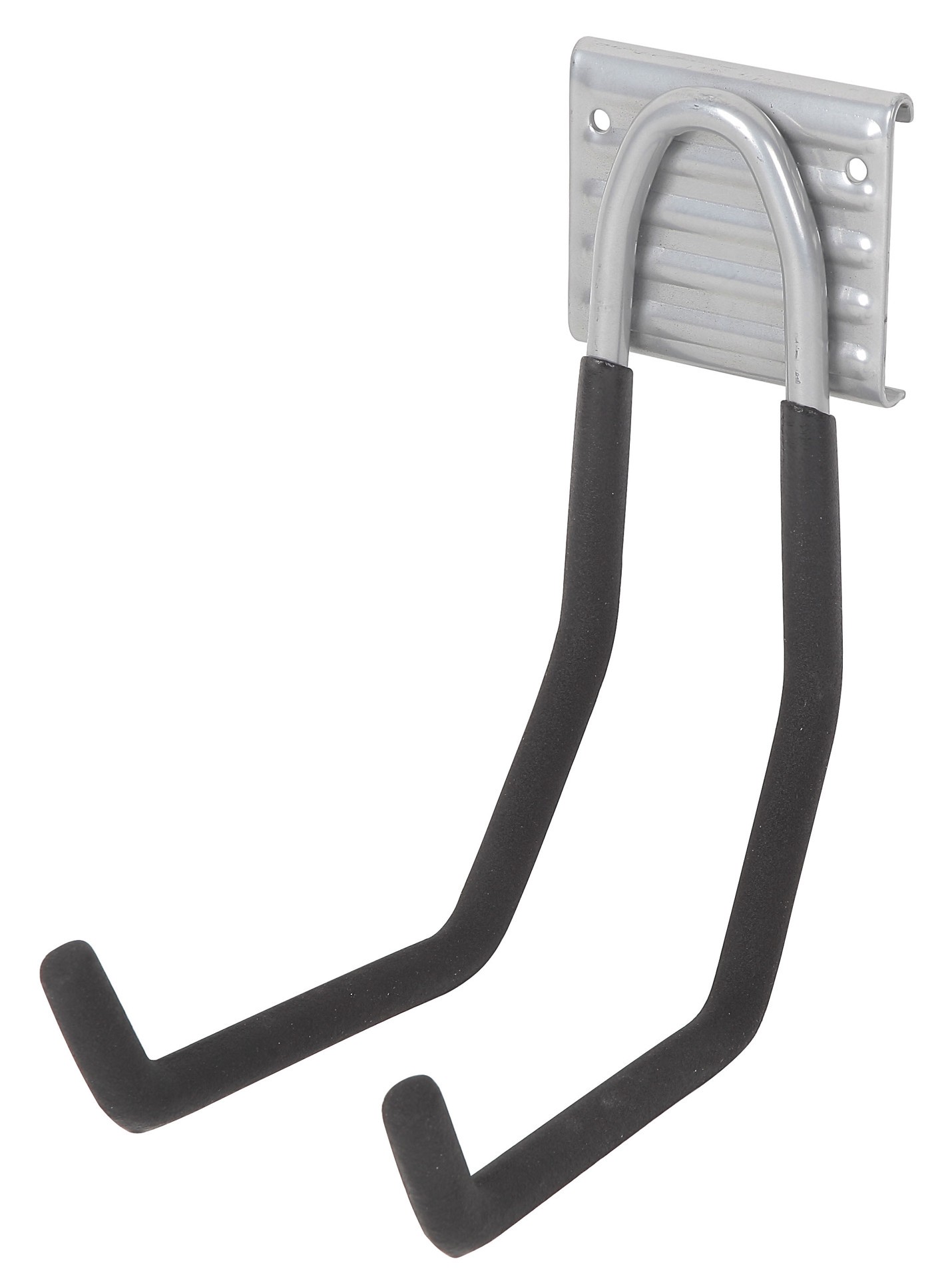 Easy to hang and reposition on k-rail wall systems. Features a strong design. Holds up to 50 lbs. Steel construction with protective vinyl coating. Great for use in garages or sheds to free up floor s…