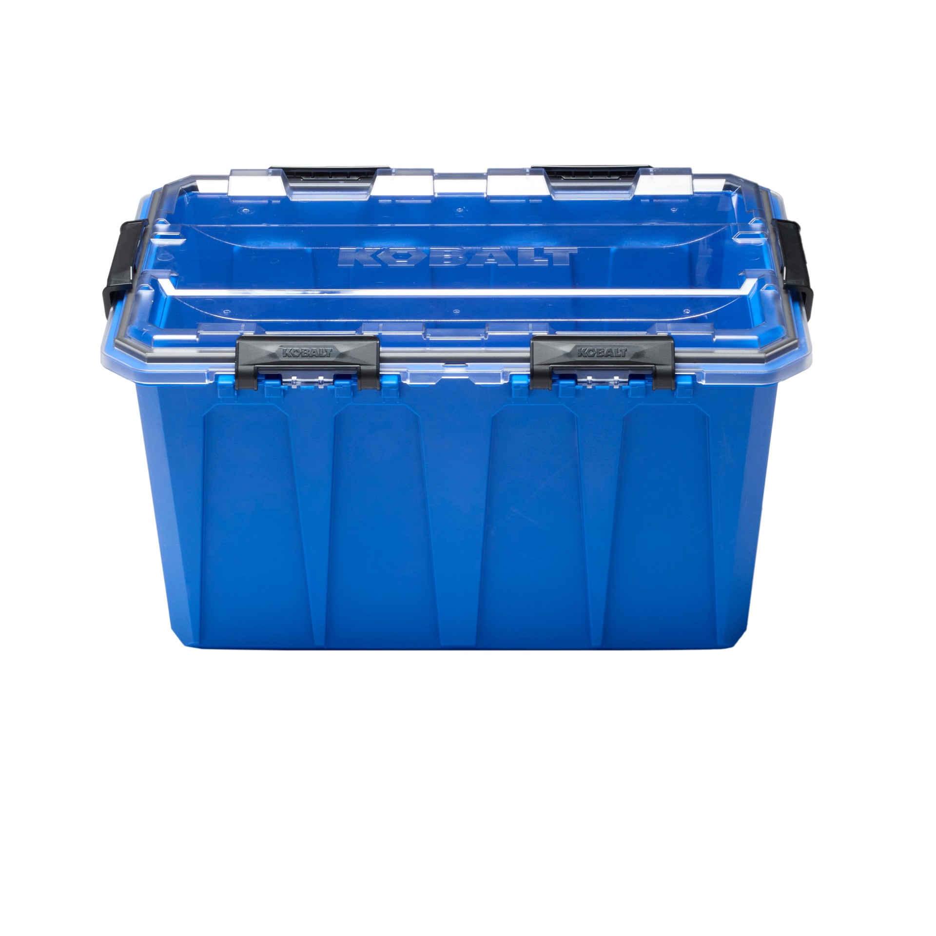 kobalt blue- 20 gallon weatherproof tote for your storage needs. 20 gallon tote made of heavy-duty polypropylene base with poly carbonate UV protected clear lid. set includes one base and one clear li…