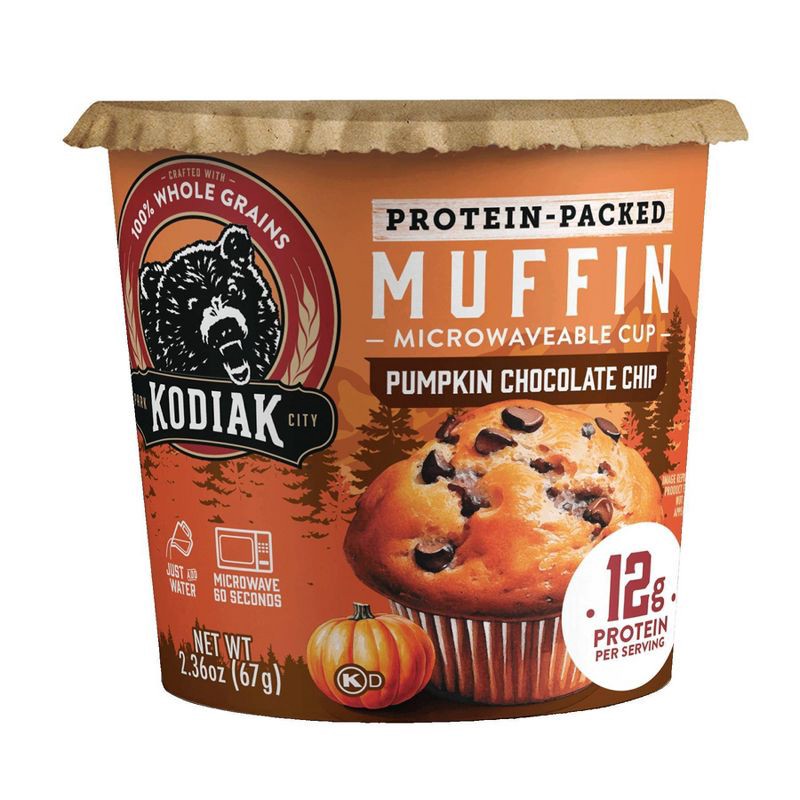 - Pumpkin dark chocolate Kodiak protein muffin in a cup