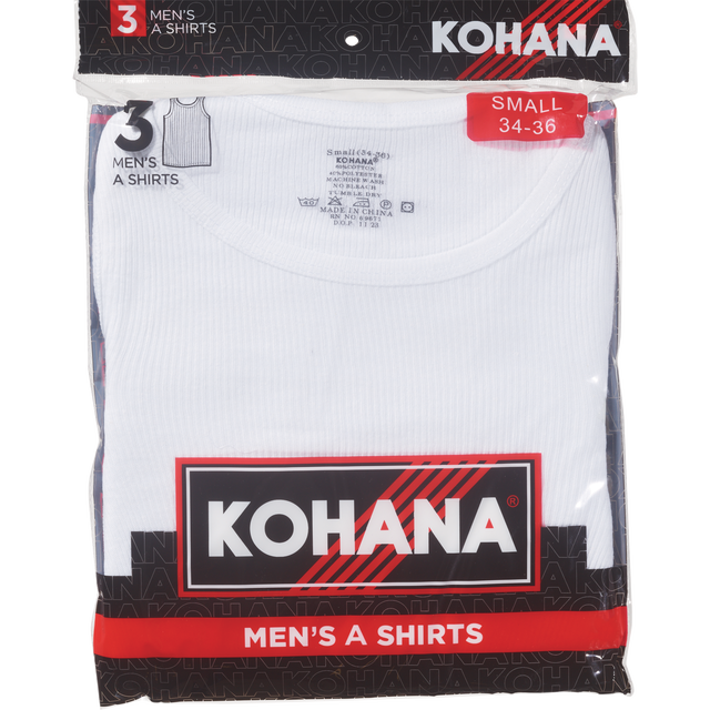 White a-shirt 3 in a pack, one size per package. Available in multiple sizes small, medium, large and x-large. 3 pack white Ribbed for extra comfort Athletic fit