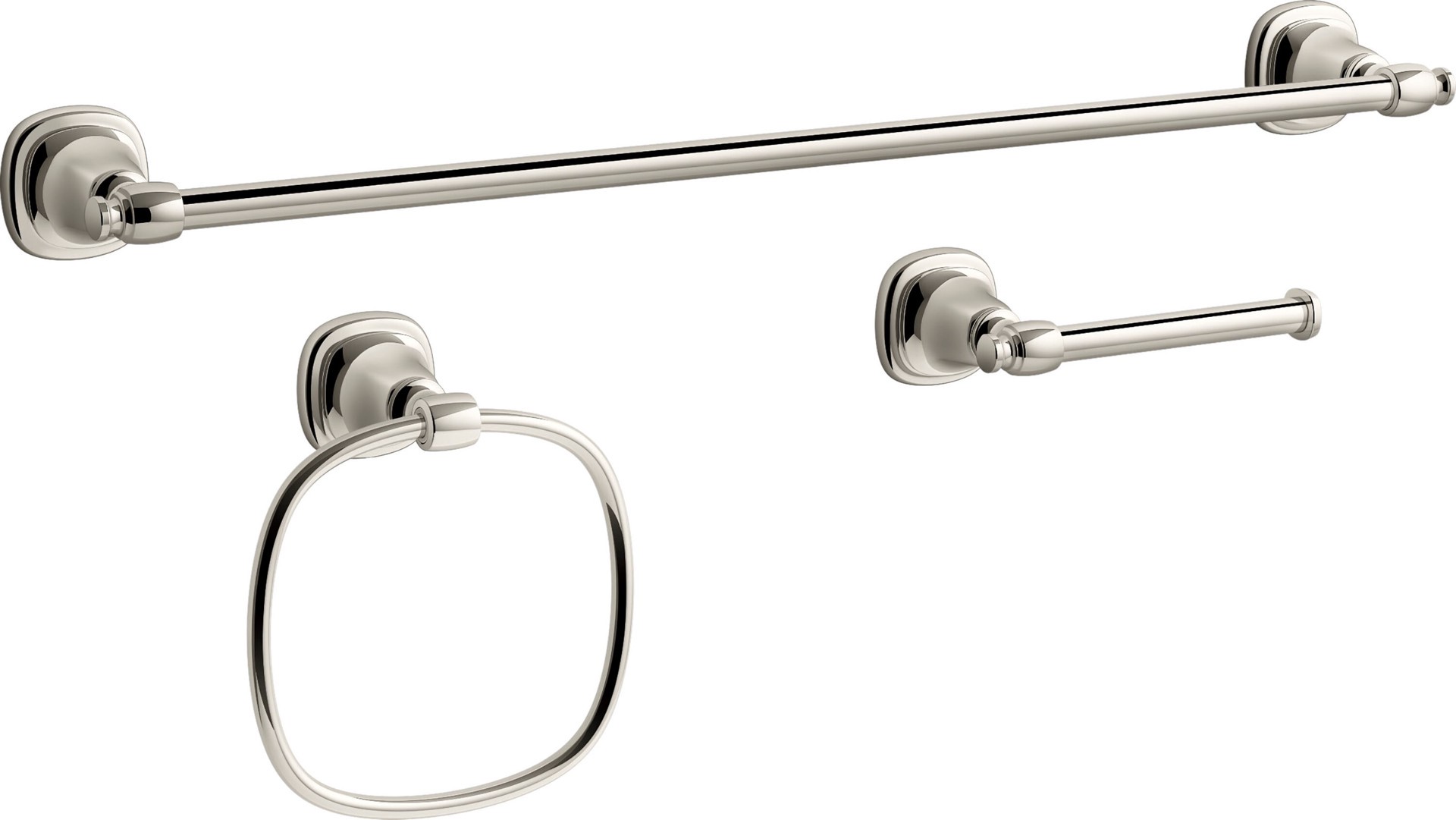 KOHLER 3 -Piece Florez Vibrant Polished Nickel Decorative Bathroom Hardware Set Towel Bar, Toilet Paper Holder, Towel Ring Included
