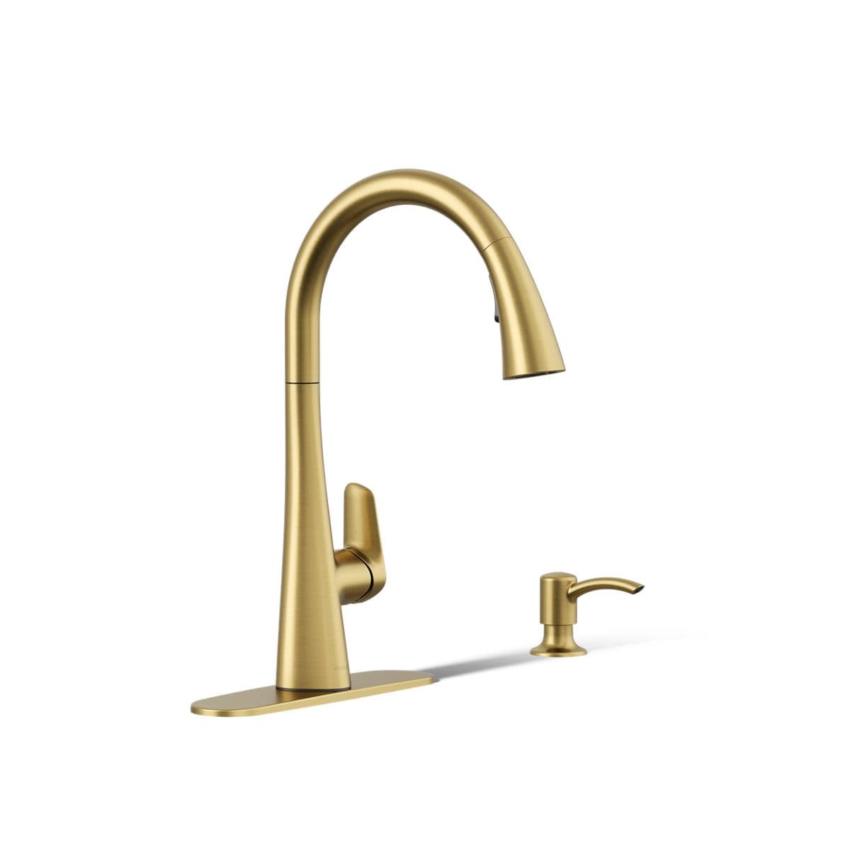 KOHLER Anessia Vibrant Brushed Moderne Brass Single Handle Deck-mount Pull-down Kitchen Faucet with Sprayer (Includes Deck Plate) (Includes Soap Dispenser)
